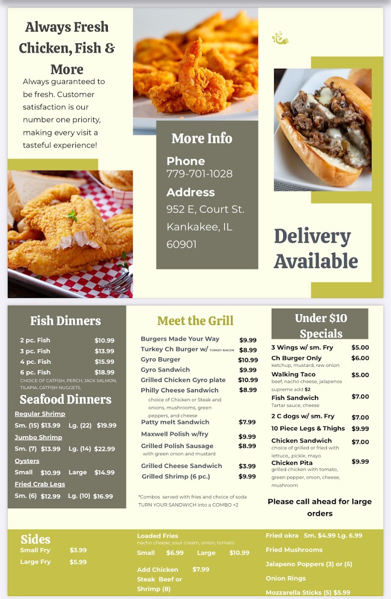 At Chicken Dip / Always Fresh Menu, you'll find a variety of mouth-watering dishes that showcase the finest chicken dips and fresh ingredients. Located at 952 E Court St, Kankakee, IL, this charming spot is perfect for those looking for a delicious, satisfying meal. Whether you're in the mood for a creamy dip with a perfect balance of flavors or a hearty dish made from fresh, high-quality chicken, there's something here for everyone. The menu is packed with options that will please your taste buds, from savory chicken appetizers to flavorful main courses. No matter what you choose, you can always expect a fresh, flavorful experience that keeps you coming back for more.